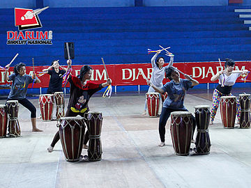 Grup tari sedang melakukan latihan di GOR KONI Bandung untuk persiapan pembukaan Djarum Sirkuit Nasional Li-Ning 2013 Jawa Barat Open.