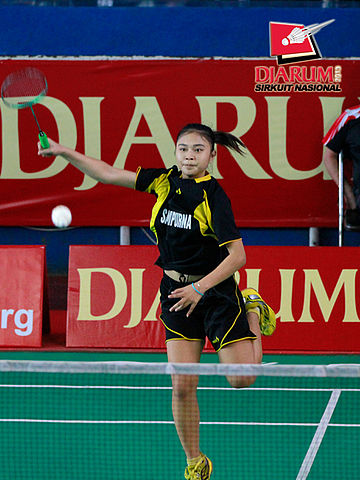 Tunggal taruna putri Guna Dharma, Mia Mawarti mengembalikan kok ke arah Tia Sari (SGS PLN).