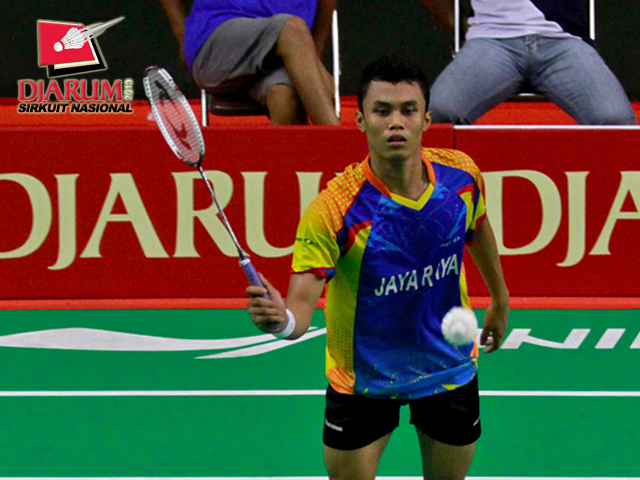 R Eka Fajar K (Jaya Raya Jakarta) menembalikan serve lawan.