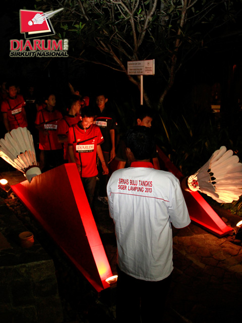 Sejumlah atlet PB Djarum saat memasuki Pandan Wangi Hotel Sheraton sebelum memulai acara Gala Dinner.