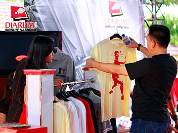 Salah satu pengunjung Djarum Sirkuit Nasional Li-Ning 2013 sedang memilih merchendise di booth Djarum.