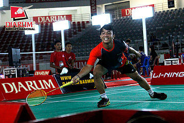 Ramadhani Zulkifli (PB Djarum) berhasil membaca pengembalian dari Wiranto (Exist).
