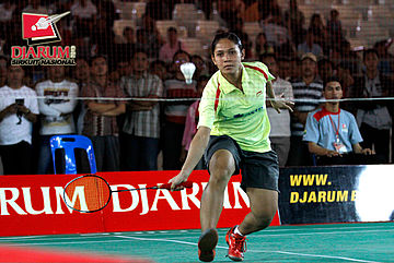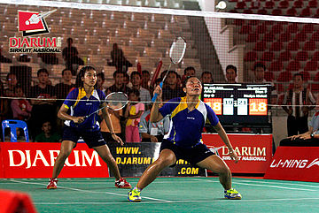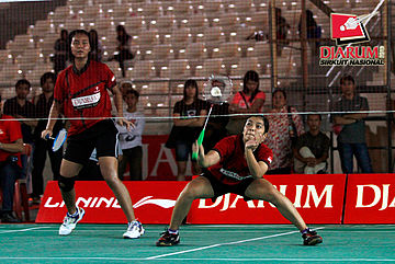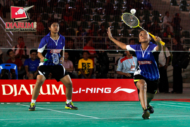 Chintia Rhizta/Ristya Ayu (PB Djarum) berhasil menghadang serangan yang dilepaskan Dini Fitri/Inten Ratnasari (SGS PLN).