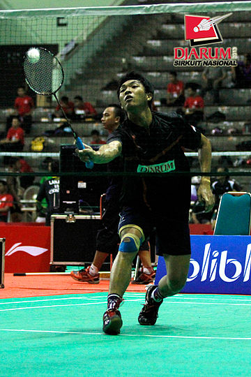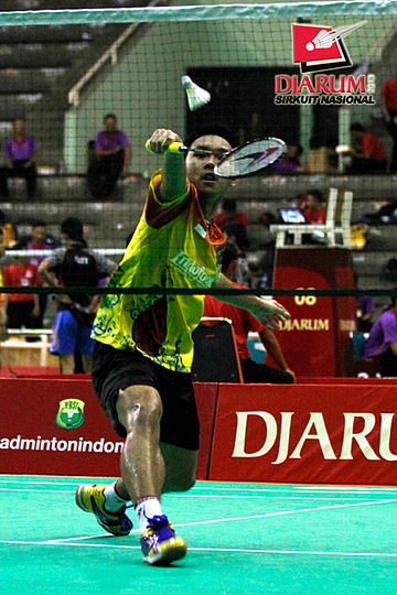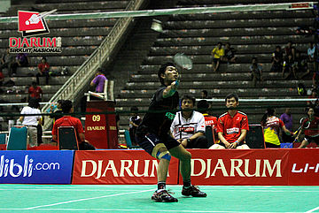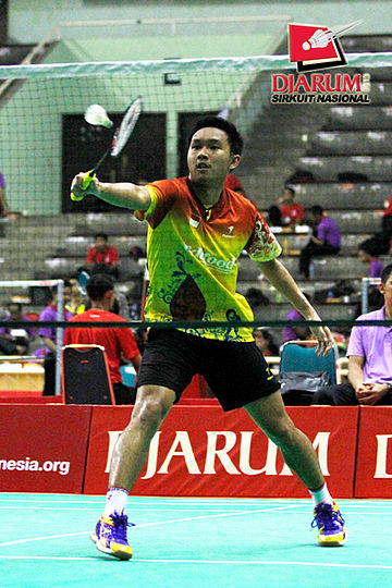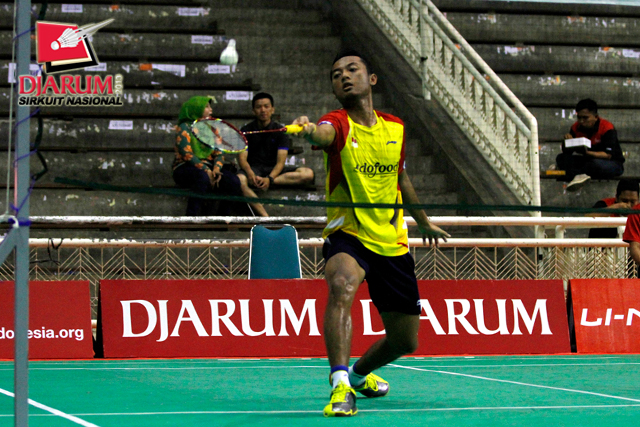 Ryan Fajar (PB Djarum) berhasil mengembalikan shuttlecock ke arah Anthony Sinisuka (Pelatnas).