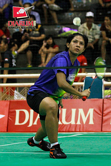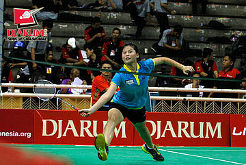 Marsa Indah (PB Djarum) mengambil ancang-ancang untuk melepaskan smash.