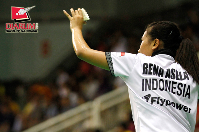 Rena Asela (PB Djarum) bersiap melakukan serve.