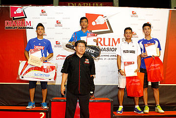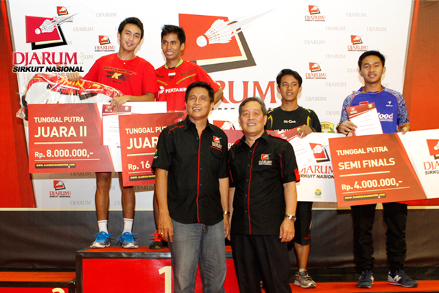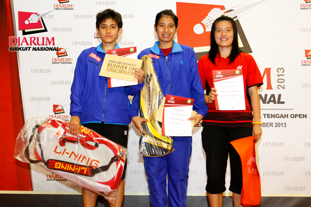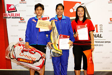 Chintia Rhizta/Ristya Ayu (PB Djarum) mengembalikan shhuttlecock ke arah Jovita Evania/Novalita Anggraeni (Mutiara Bandung).
