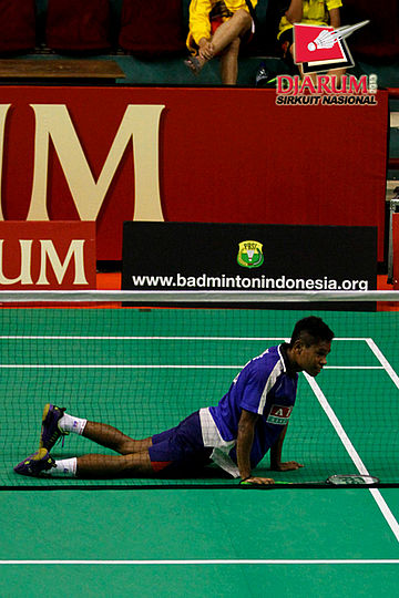 M.Shulton Al Hakim (MUTIARA BANDUNG) mencoba mengembalikan permainan netting Pradika Putra (SURYABAJA).