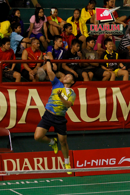 Ariyanto Haryadi Putra (JR ENKEI) lakukan jumping smash.