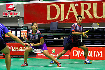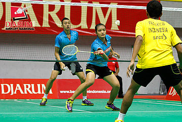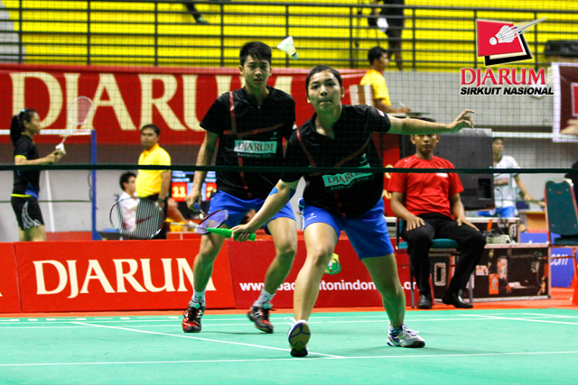 Ricky Alverino/Ristya Ayu (PB Djarum) bersiap menyambut pengembalian dari pasangan Danang Dwi/Syifa Fauziah (Jaya Raya).