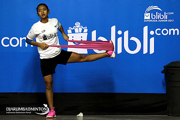 Desima Aqmar Syarafina (Djarum) Melakukan Peregangan Sebelum Bertanding