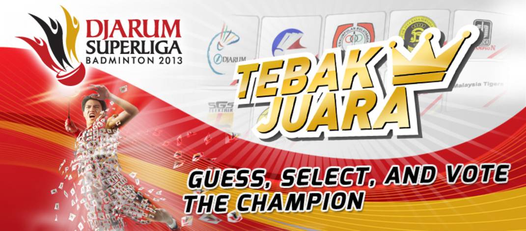 Punya klub andalan yang tengah berlaga di Djarum Superliga 2013? Ini saatnya bagi kamu untuk mengekspresikan bentuk dukungan kamu di Tebak Juara Djarum Superliga 2013.