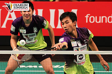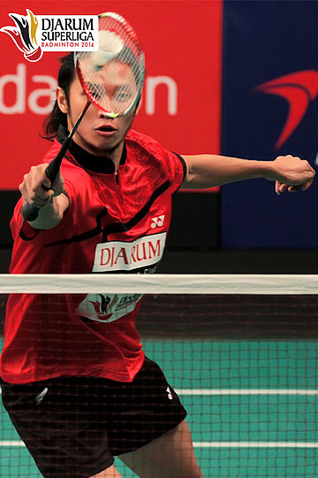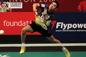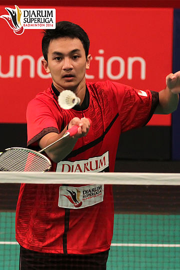 Simon Santoso melayangkan pukulan keras kepada lawan
