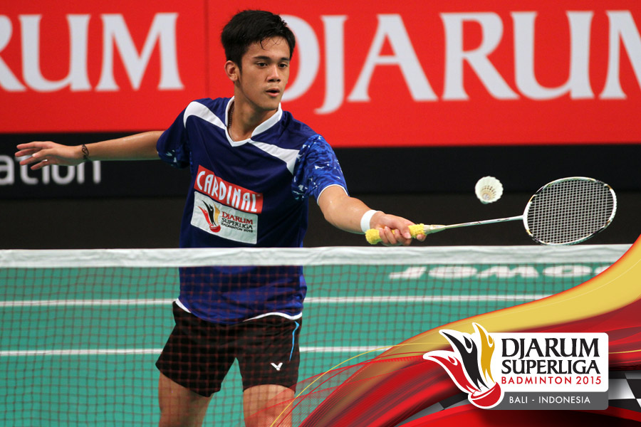 Dionysius Hayom Rumbaka (Djarum Kudus) bersiap menyambut pengembalian dari Prinyawat Thongnuam (Granular Thailand).