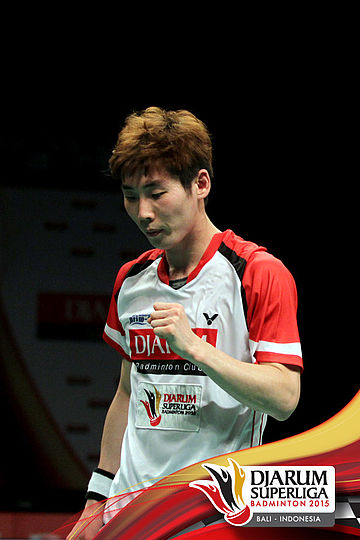 Son Wan Ho (Djarum Kudus) bersiap melepaskan serve.
