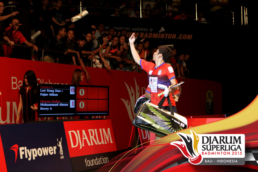 Son Wan Ho (Djarum Kudus) dan Simon Santoso (Musica Champion) memberikan apresiasi kepada seluruh penonton yang memenuhi GOR Lila Bhuana.