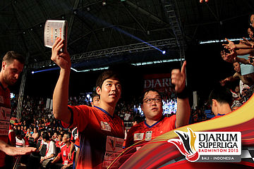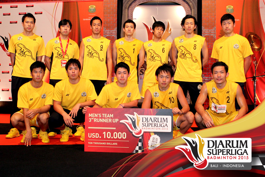 Juara ke empat putra Djarum Superliga 2015, Tonami Jepang berpose bersama.