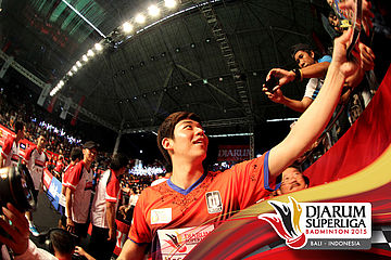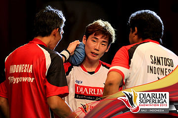 Son Wan Ho (Djarum Kudus) saat mendapatkan pengarahan.