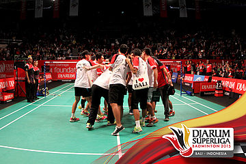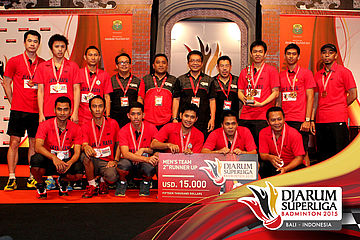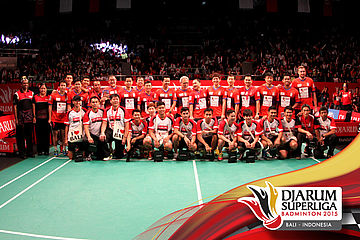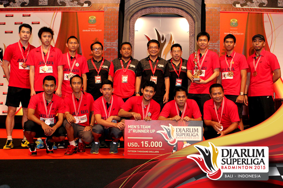 Juara ke tiga Djarum Superliga 2015, Jaya Raya berfoto bersama.