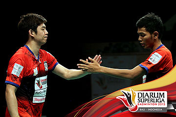 Kekompakan Fajar Alfian/Lee Yong Dae (Musica Champion) dilapangan pertandingan.