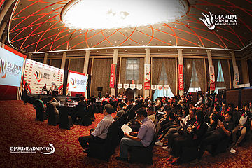 Suasana saat press conference acara Djarum Superliga Badminton 2017.