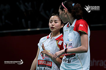 Gloria Emanuelle/Ma Jin (PB Djarum) saling berkoordinasi.