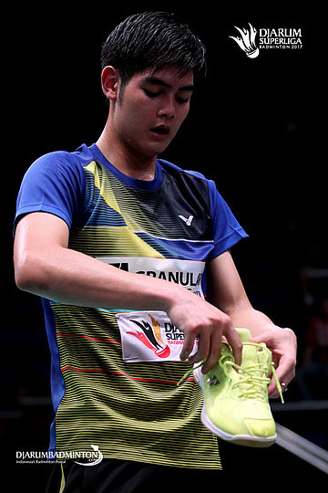 Pannawit Thongnuam (Granular Thailand) membetulkan sepatunya.