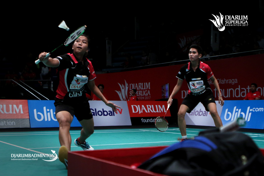 Ririn Amelia/Rosyita Eka Putri (PB Djarum) menyambut pengembalian.