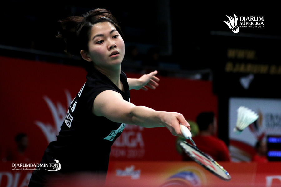 Son Wan Ho (PB Djarum) menghadang serangan.