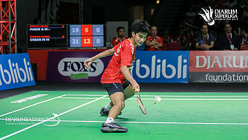 Ihsan Maulana MUSTOFA (DJARUM KUDUS) bersiap mengembalikan serangan