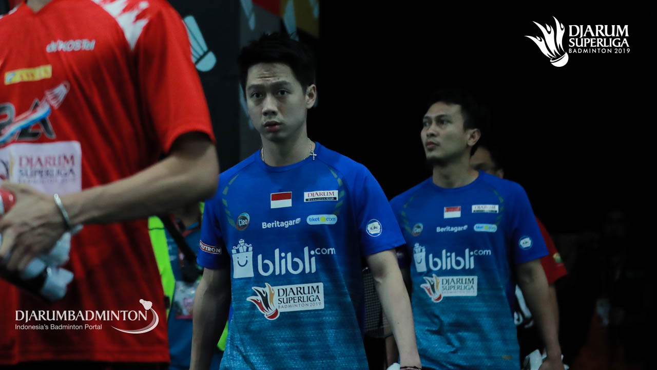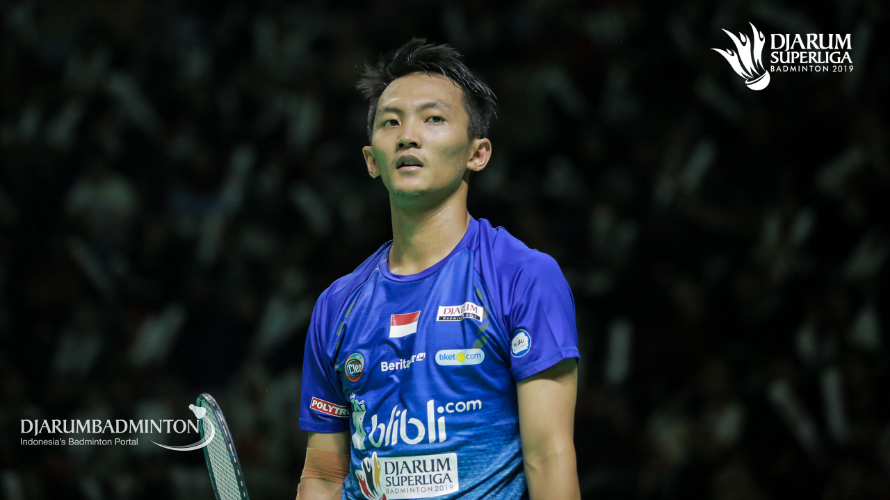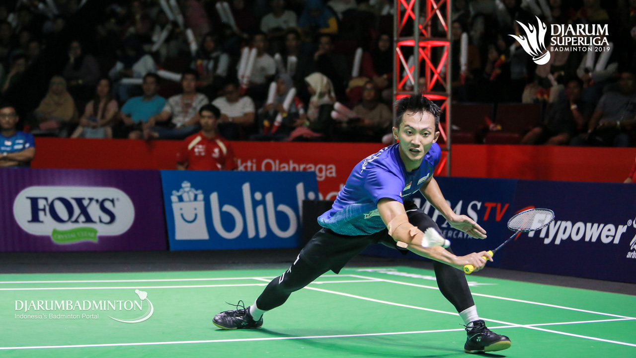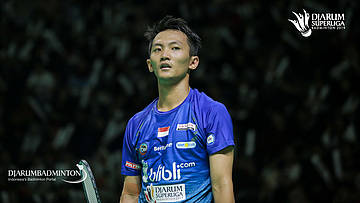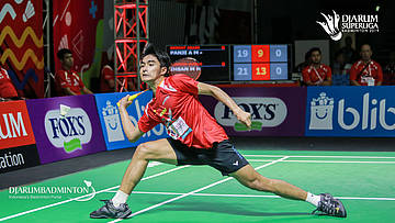 Ihsan Maulana Mustofa (Djarum Kudus) menahan serangan
