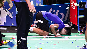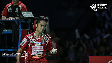 Anthony Sinisuka GINTING (MUSICA TRINITY) mengambil shuttlecock
