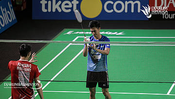 Akbar Bintang CAHYONO+Berry ANGRIAWAN (DJARUM KUDUS) menyambar pengembalian