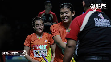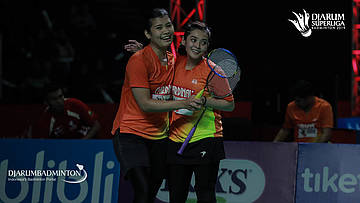 Maretha Dea Giovani/Yulfira Barkah (Mutiara Cardinal Bandung) saat memenangkan pertandingan