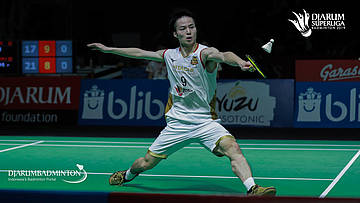 Ihsan Maulana Mustofa (Djarum Kudus) Menggapai Shuttlecock