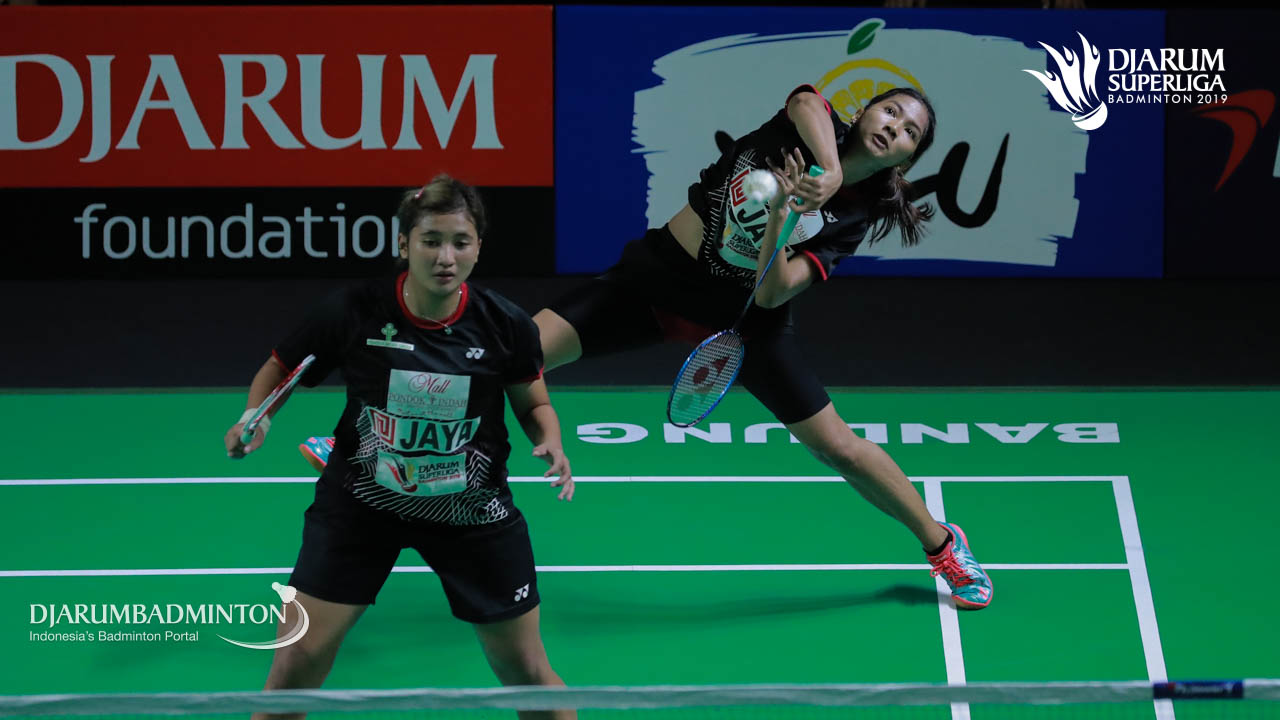 Jauza Fadhila Sugiarto/Virni Putri (Jaya Raya Jakarta) mengembalikan shuttlecock