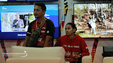 Dinar Dyah Ayustine (Djarum Kudus) bersama pelatih saat di player lounge