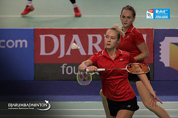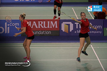 Reka Madarasz/Vivien Sandorhazi (Hungary) Menahan Serangan Lawan