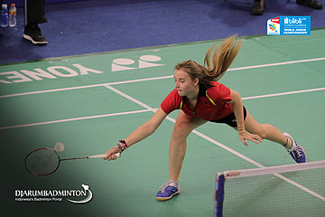 Clara Lassaux (Belgium) Mencoba Menggapai Shuttlecock