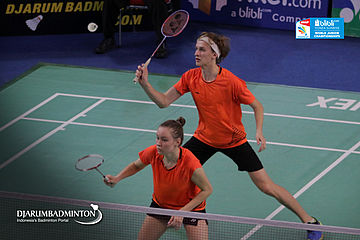 Mikhail Lavrikov/Anastasiia Semenova (Russia) Mengembalikan Shuttlecock