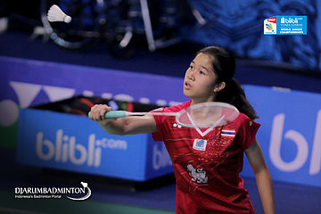 Pattarasuda Chaiwan (Thailand) Mengembalikan Shuttlecock Kearah Lawan