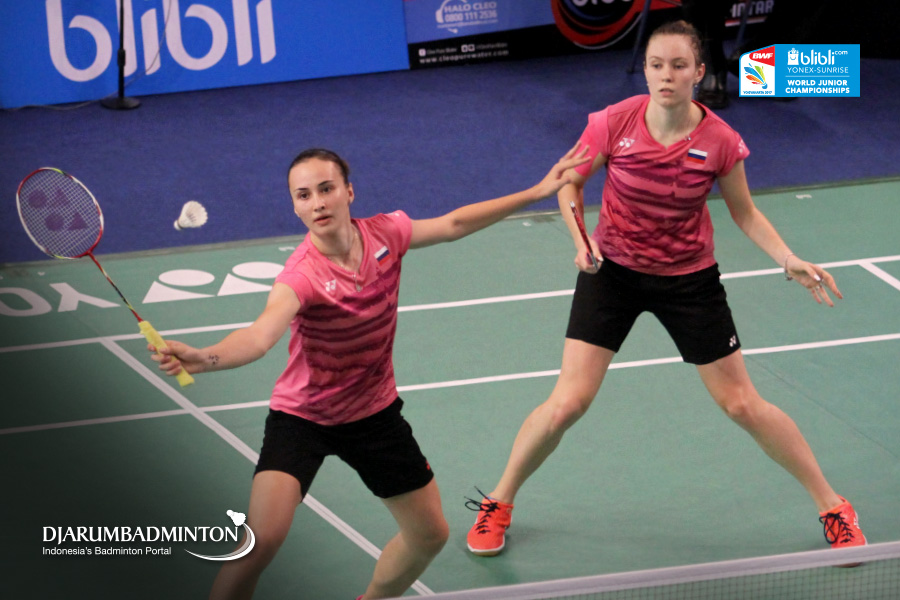 Anastasiia Semenova/Anastasiia Shapovalova (Rusia) Mengembalikan Shuttlecock Kearah Lawan
