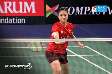 Goh Jin Wei (Malaysia) Berusaha Menggapai Shuttlecock