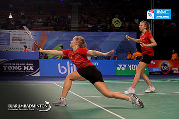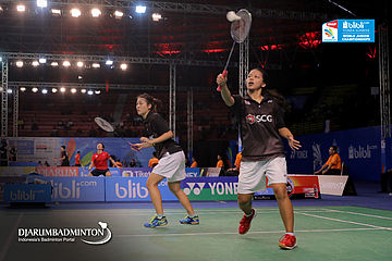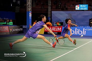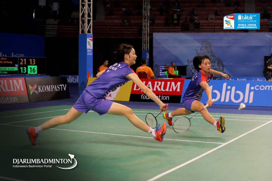 Min Ji Kim/Ah Yeong Seong (Korea) Berusaha Menggapai Shuttlecock