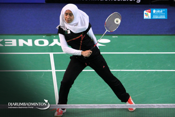 Bassam Tahseen A (Egypt) Berusaha Menggapai Shuttlecock
