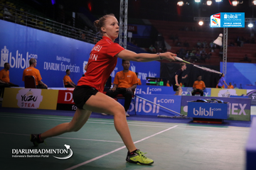Elena Andreu (Spain) Menahan Shuttlecock Lawan