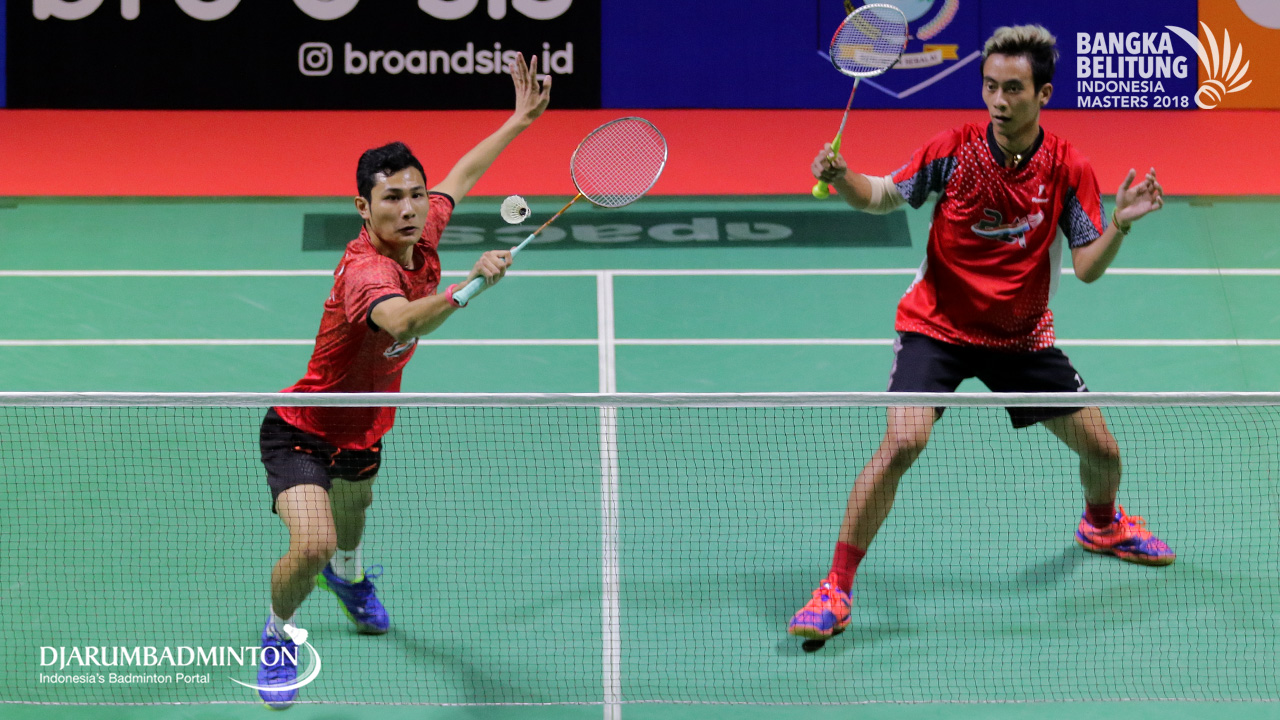 Kenas Adi Haryanto/Agripinna Prima Rahmanto Putera (INA) menyambut pengembalian