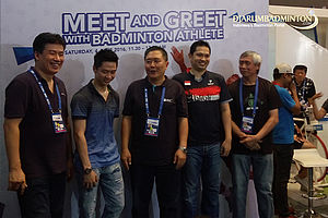 JAKARTA - Meet and Greet with Badminton Athlete yang di selenggarakan Blibli.com di booth Blili.com yang berada di loby Istora yang saat ini sedang berlangsungnya turnamen BCA Indonesia Open Superseries Premier 2016, pagi tadi Sabtu (4/6) diantaranya menghadirkan legenda bulutangkis Indonesia.