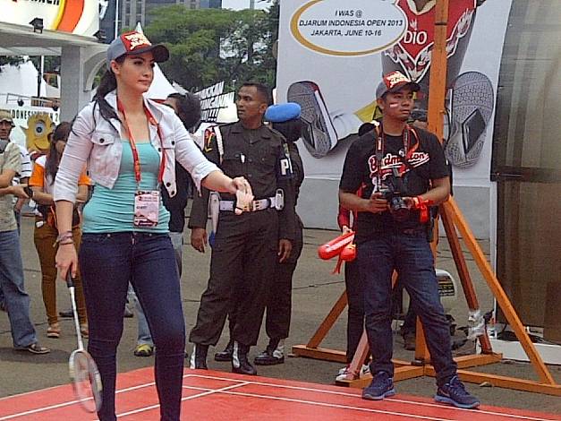 Selebriti sejak dua hari lalu tak mau ketinggalan euforia Djarum Indonesia Open Super Series Premier 2013. Di penyelenggaraan hari kelma ini, artis sinetron Christy Jusung hadir langsung di Istora.