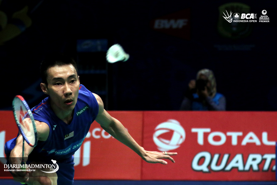 Lee Chong Wei (Malaysia) melepaskan serangan